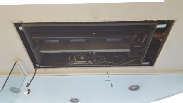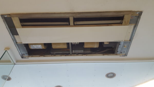 天井に設置されている大型エアコンは、見えないからこそ汚れが溜まりやすく、