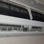 外装カバー・フィルター・ルーバーを取り外し、内部の熱交換器や送風ファンを確認。